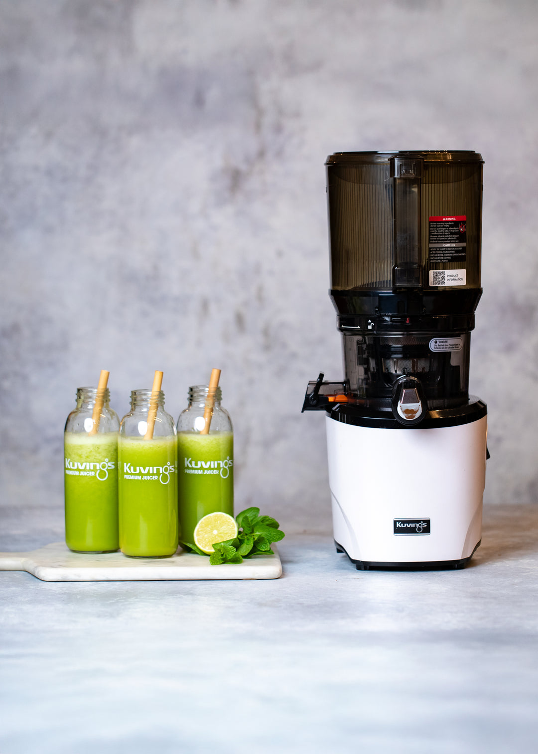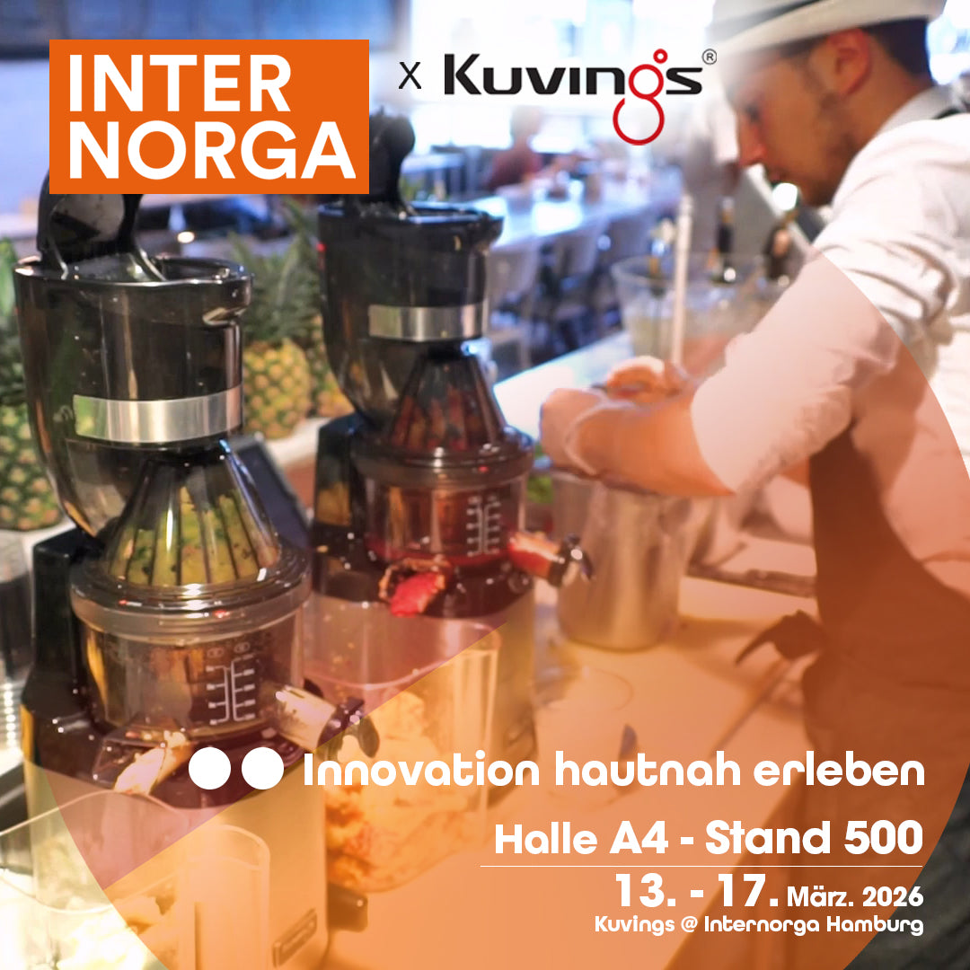 Kuvings Whole Slow Juicers sind mastizierende, langsam pressende Entsafter, die mit einer extra breiten Einfüllöffnung für das Einfüllen von ganzen Zutaten ausgestattet sind.