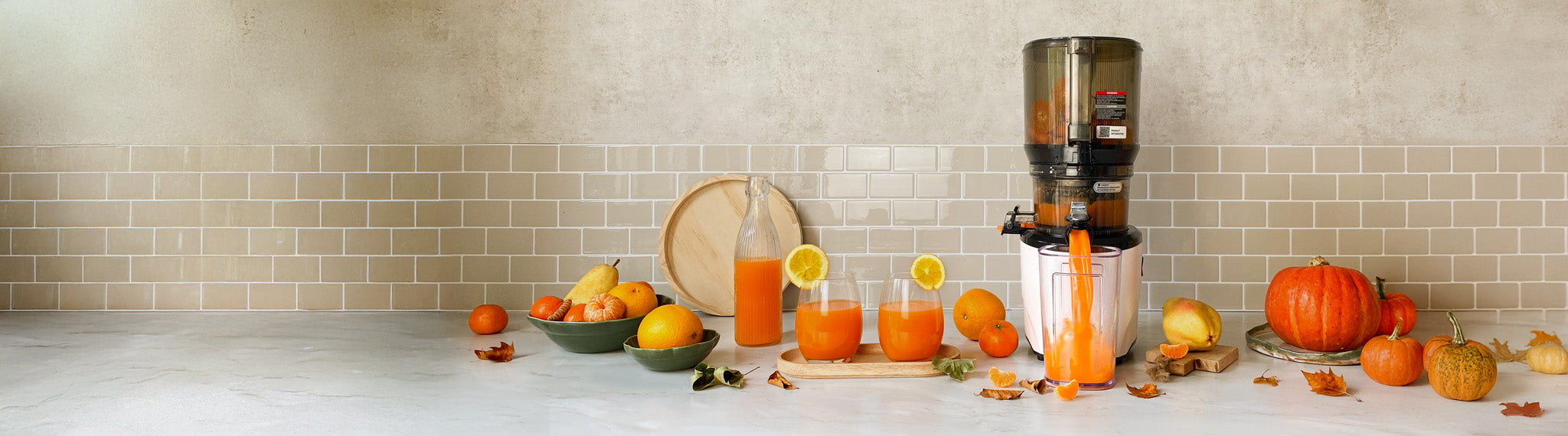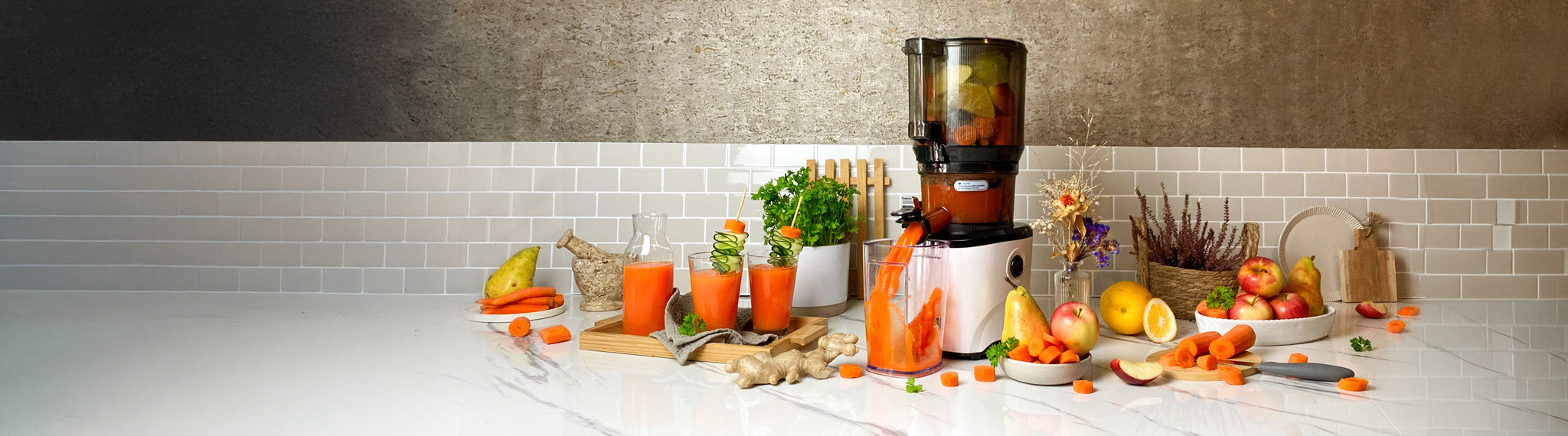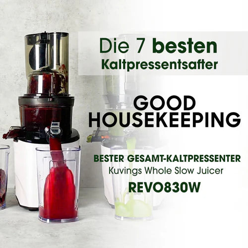 Kuvings Whole Slow Juicers sind mastizierende, langsam pressende Entsafter, die mit einer extra breiten Einfüllöffnung für das Einfüllen von ganzen Zutaten ausgestattet sind.