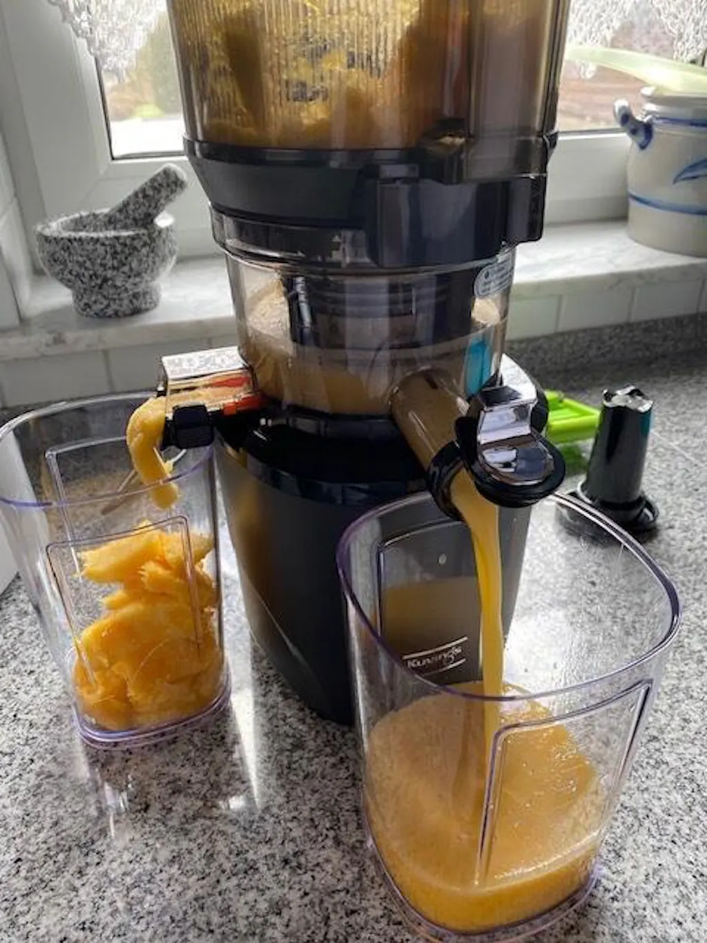 Kleiner Tipp: Verbessern Sie die Aufnahme von Beta Carotin, indem Sie Ihren Saft mit etwas Leinöl kombinieren, da Beta Carotin fettlöslich ist.