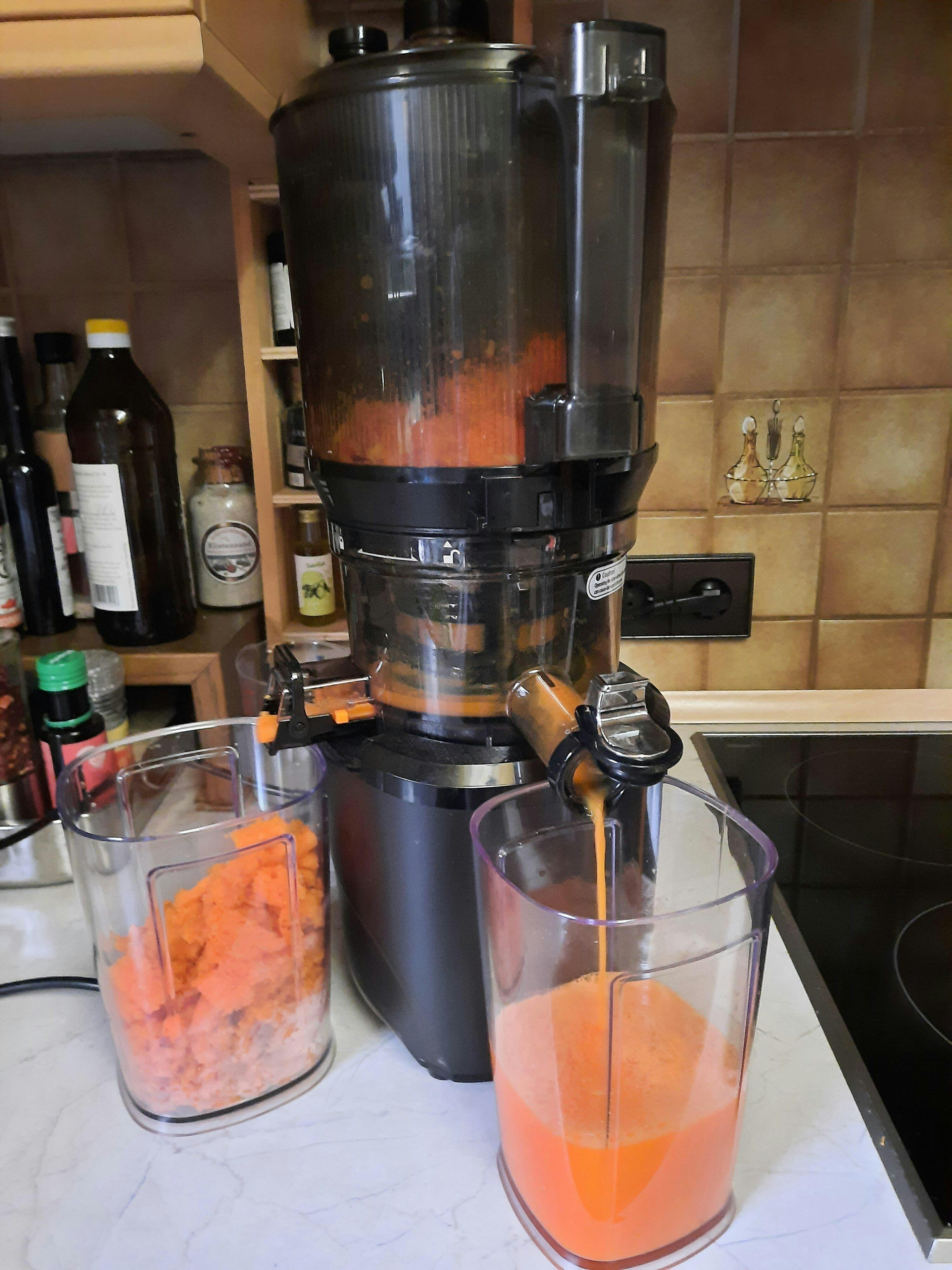 3. Aperol und Mineralwasser zum gewonnen Saft geben (Mineralwasser nach Belieben anpassen).