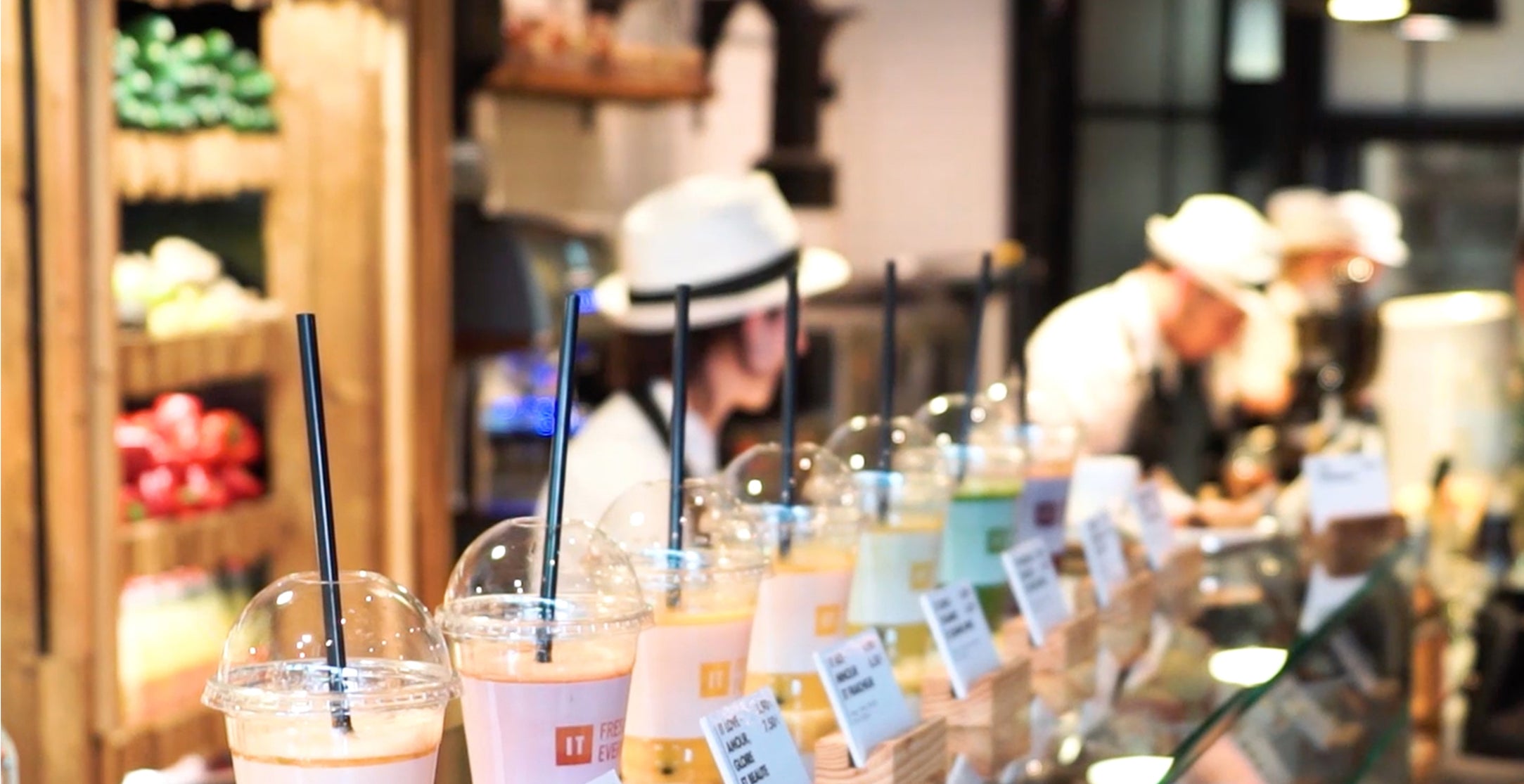 Die Saftauslassklappe ‘Smart-Cap’ verhindert das Verschütten beim Safteingießen ins Glas und dient außerdem als Hilfe beim Mischvorgang der Zutaten.