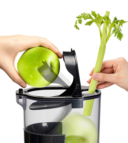Dank der extra großen Einfüllöffnung entfällt das Vorschneiden – ganze Zutaten passen mühelos hinein.