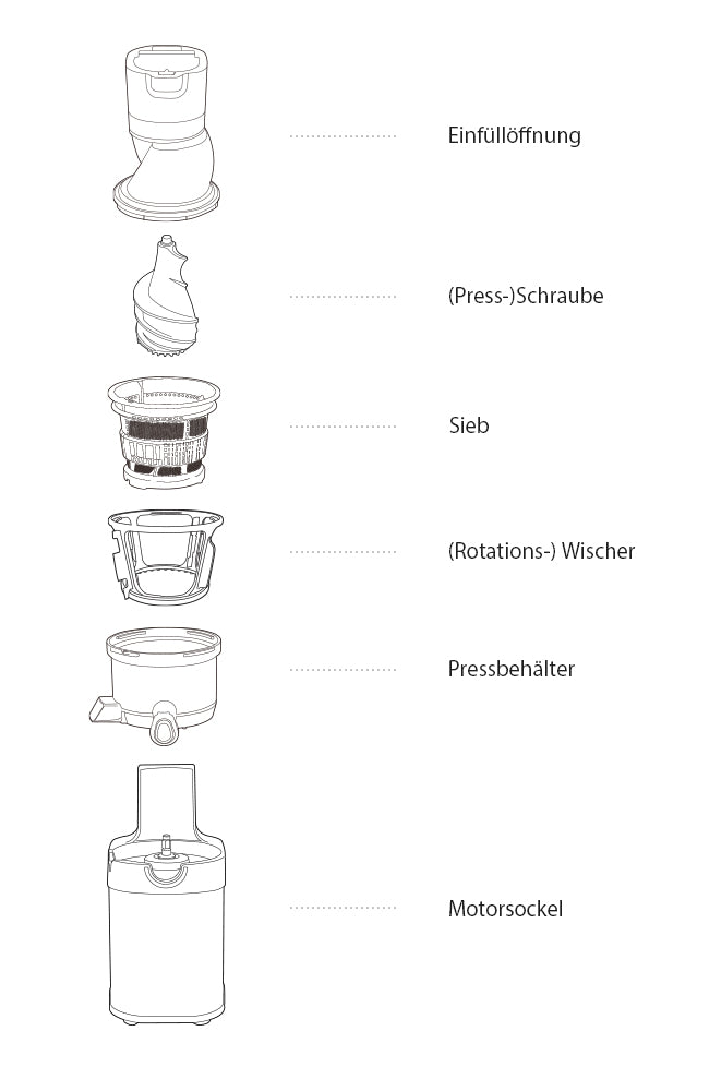 Der Entsafter startet nur, wenn alle Komponenten korrekt montiert sind – für maximale Sicherheit bei jeder Anwendung.