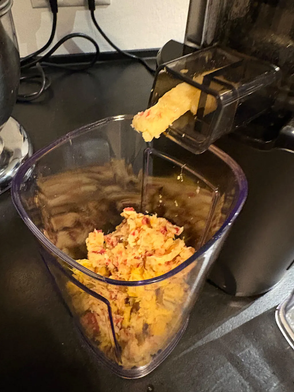 4. Slowly add the fruits and vegetables one after the other into the @kuvingsgermany slow juicer. Simply add apples whole, the REVO830 automatically cuts carrots and celery, reducing preparation time.