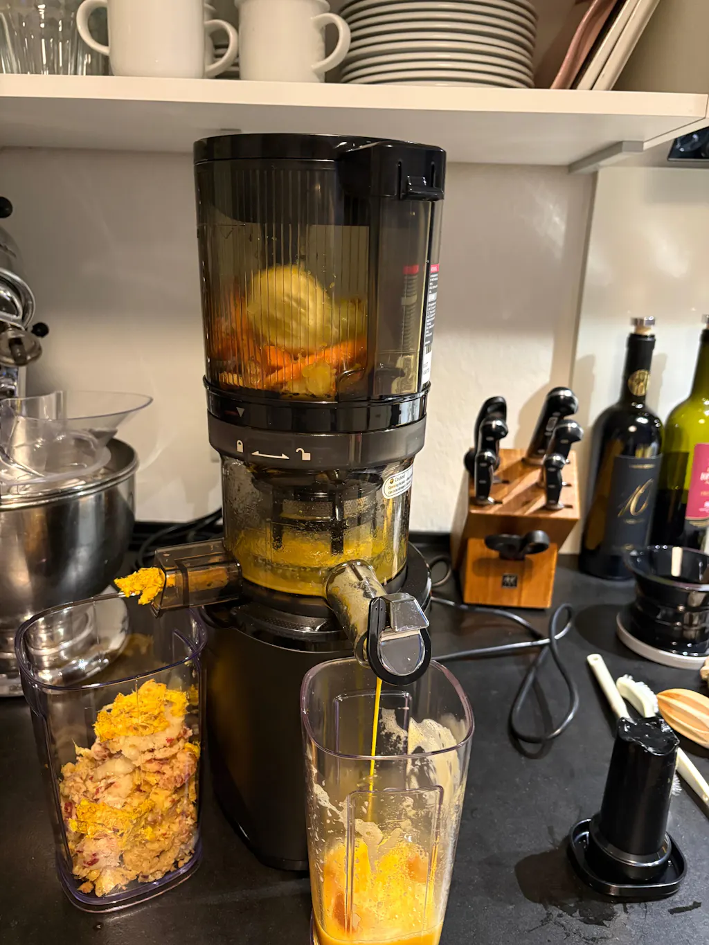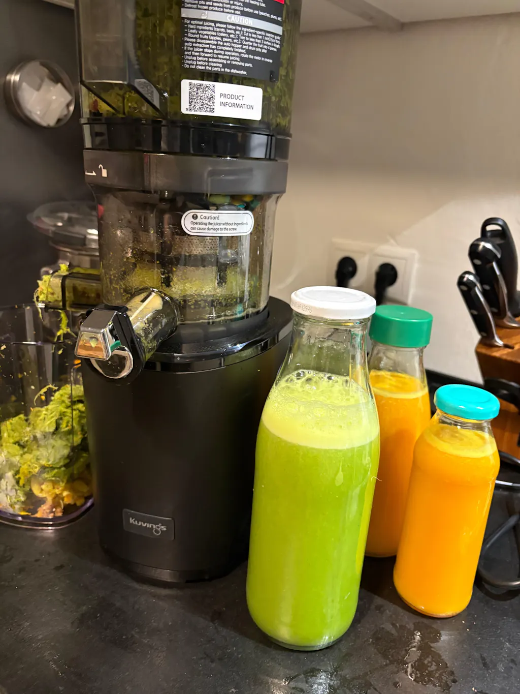 5. It is advisable to juice several liters "in reserve", then bottle them and store them in the refrigerator. The juices can be kept in the fridge for up to 72 hours, you save yourself the cleaning work and can enjoy a glass of juice at any time.