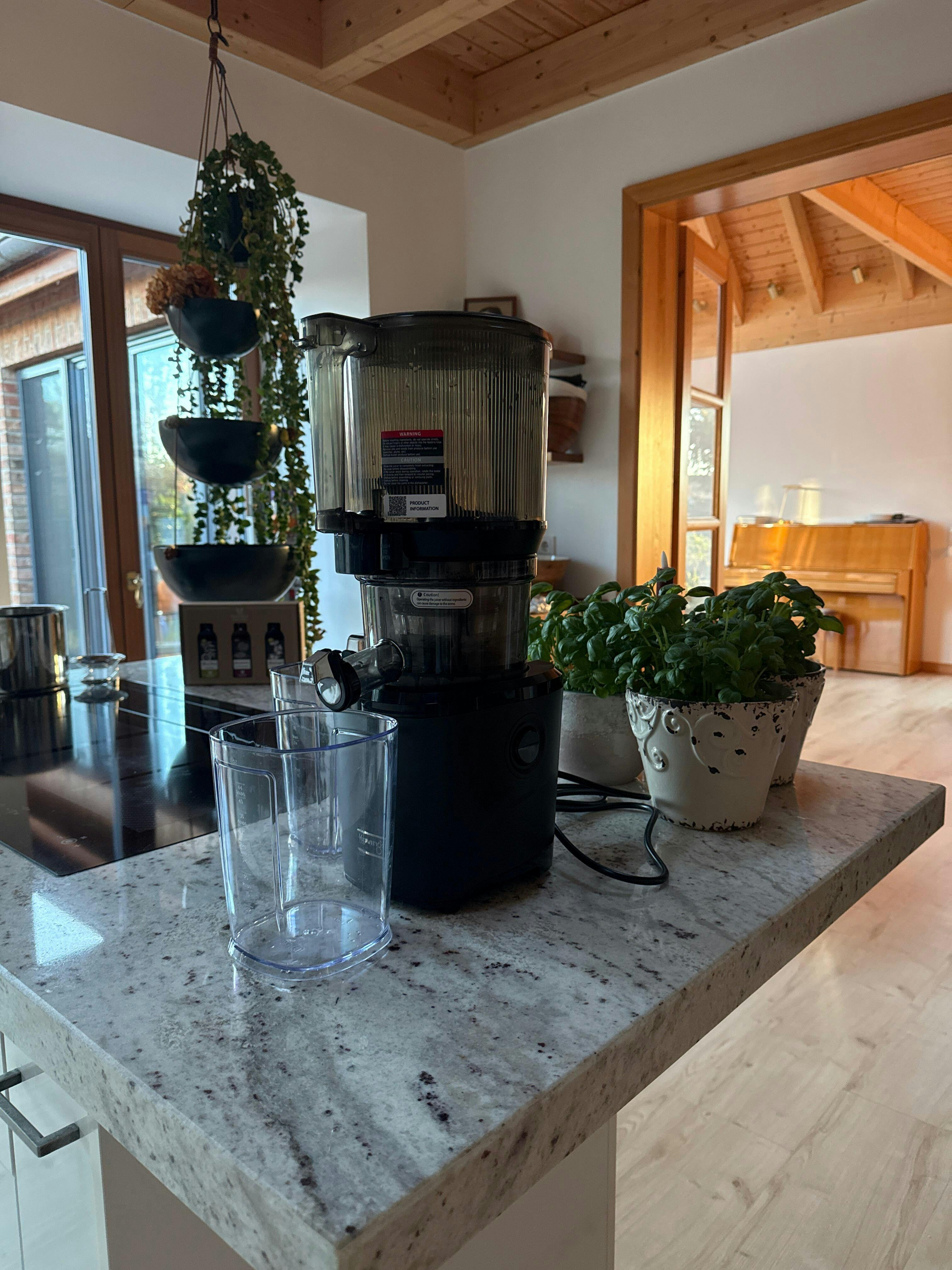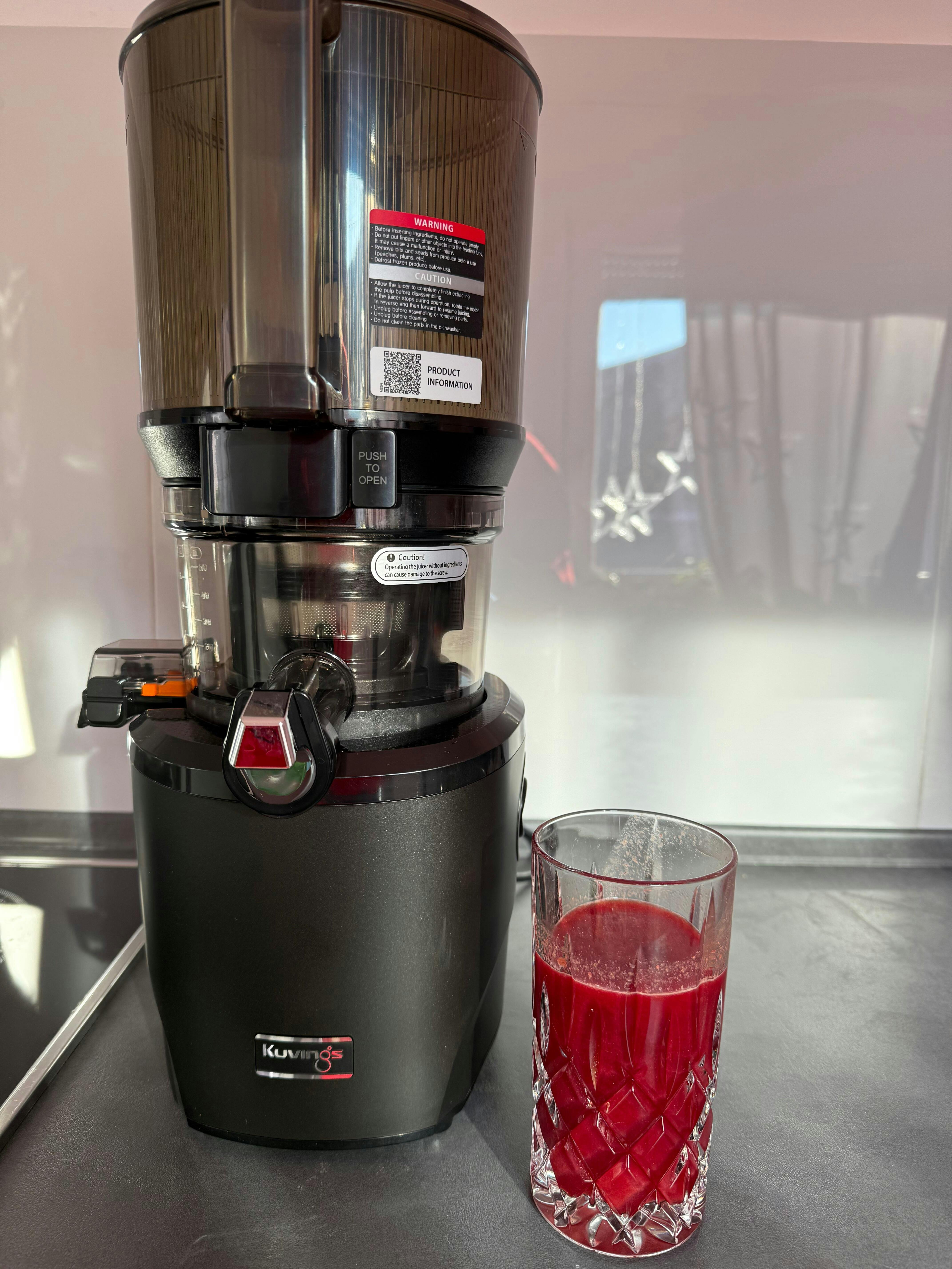 2. Mix all ingredients for a few minutes with the @kuvingsgermany premium #CB1000 blender until a smooth texture with lots of bubbles is created.