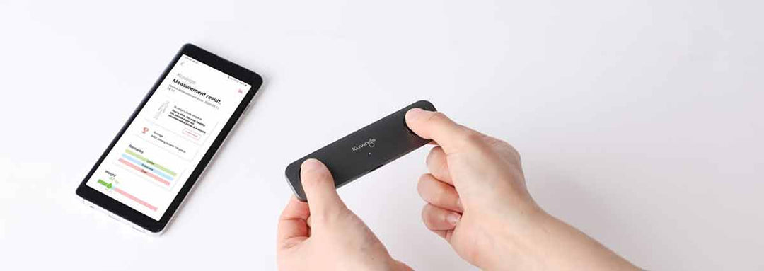 The Kuvings BMI analyzer connects to the smartphone to display the results of the measurement.