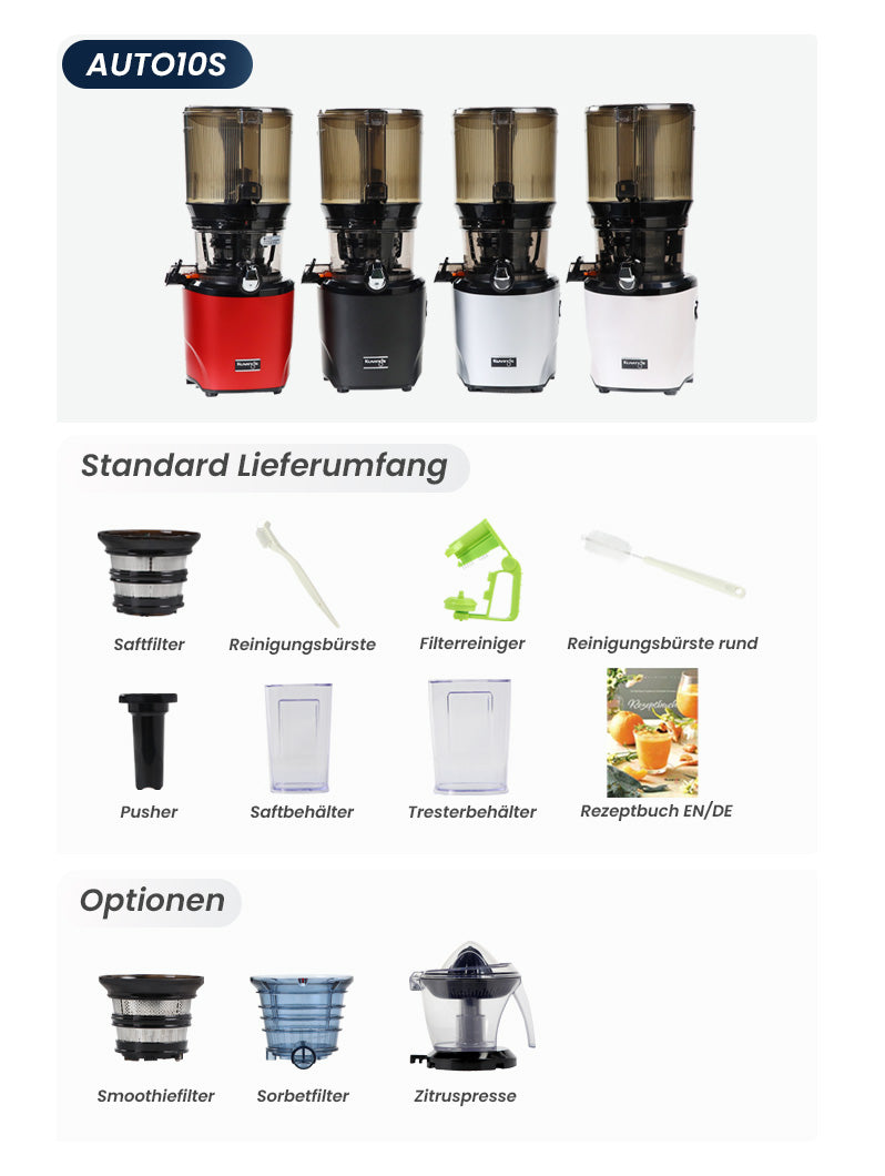Met de AUTO10S Slow Juicer doet uw apparaat het werk: