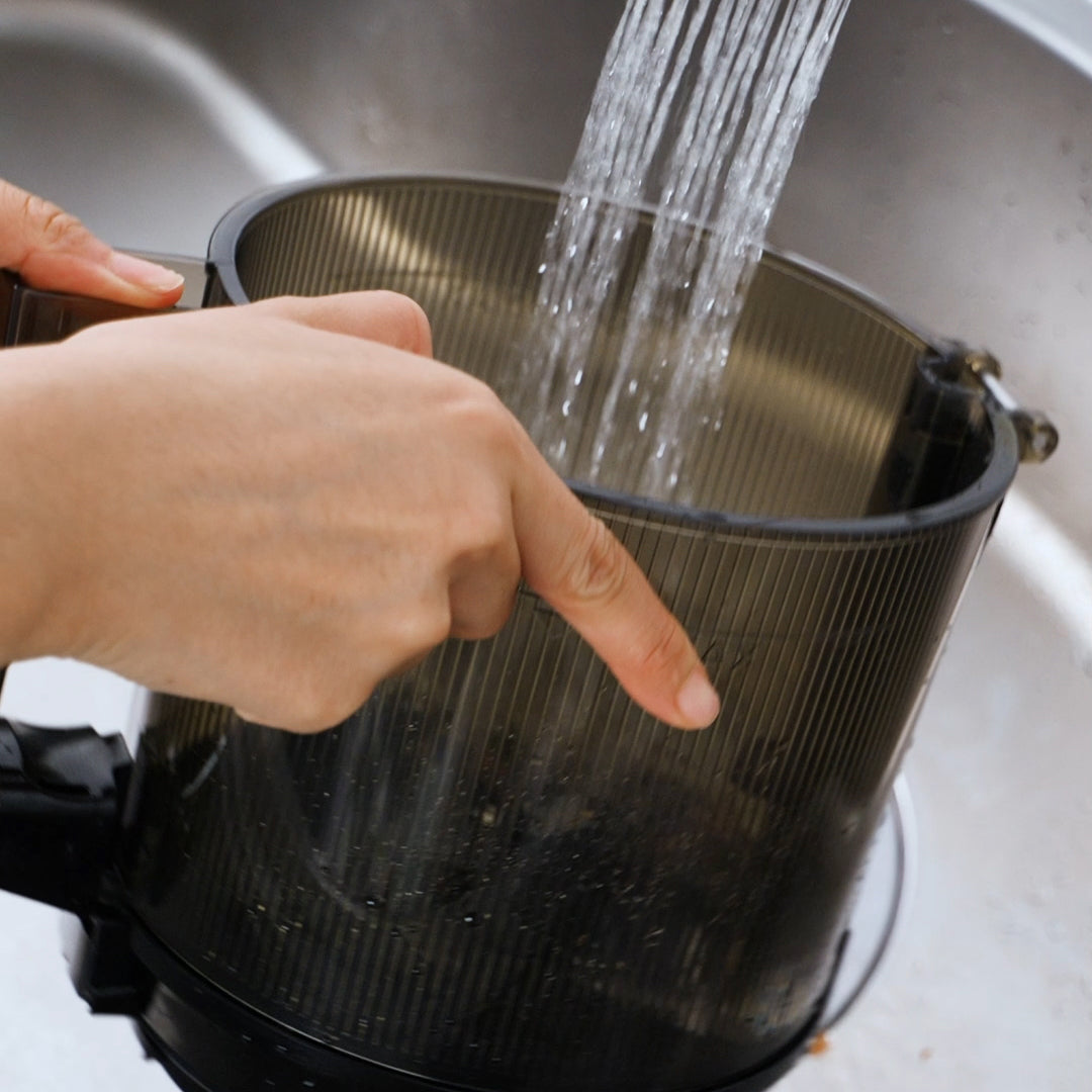 Het voorkomt druppelen, maakt het mogelijk om direct in de perscontainer te mixen en dient als praktische voorreiniging na het persen.