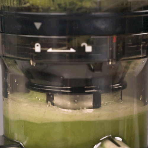 Een automatisch snijmes aan de punt van de schroef snijdt de ingrediënten in de perfecte maat voor het persen. De spiraalvormige schroef transporteert ze vervolgens snel naar het persgedeelte, voor sneller en efficiënter persen.