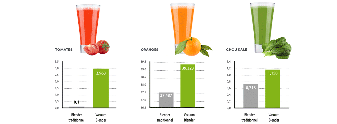 Conventionele blenders voegen lucht toe, wat resulteert in een schuimige bovenkant en een waterige onderkant. Vacuümblenders verwijderen de luchtbellen en creëren een romige, fluweelzachte consistentie. Studies tonen aan dat vacuümgemixte sappen aanzienlijk beter worden beoordeeld qua textuur en smaak dan traditioneel gemixte sappen.