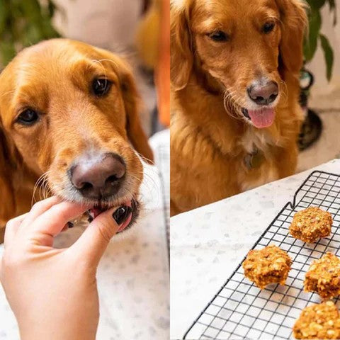 Grünkohl-, Sellerie-, Karotten-, Apfel-, Mandel-, und Rote Betetrester können auch zu gerne zu Hundefutter verarbeitet werden: