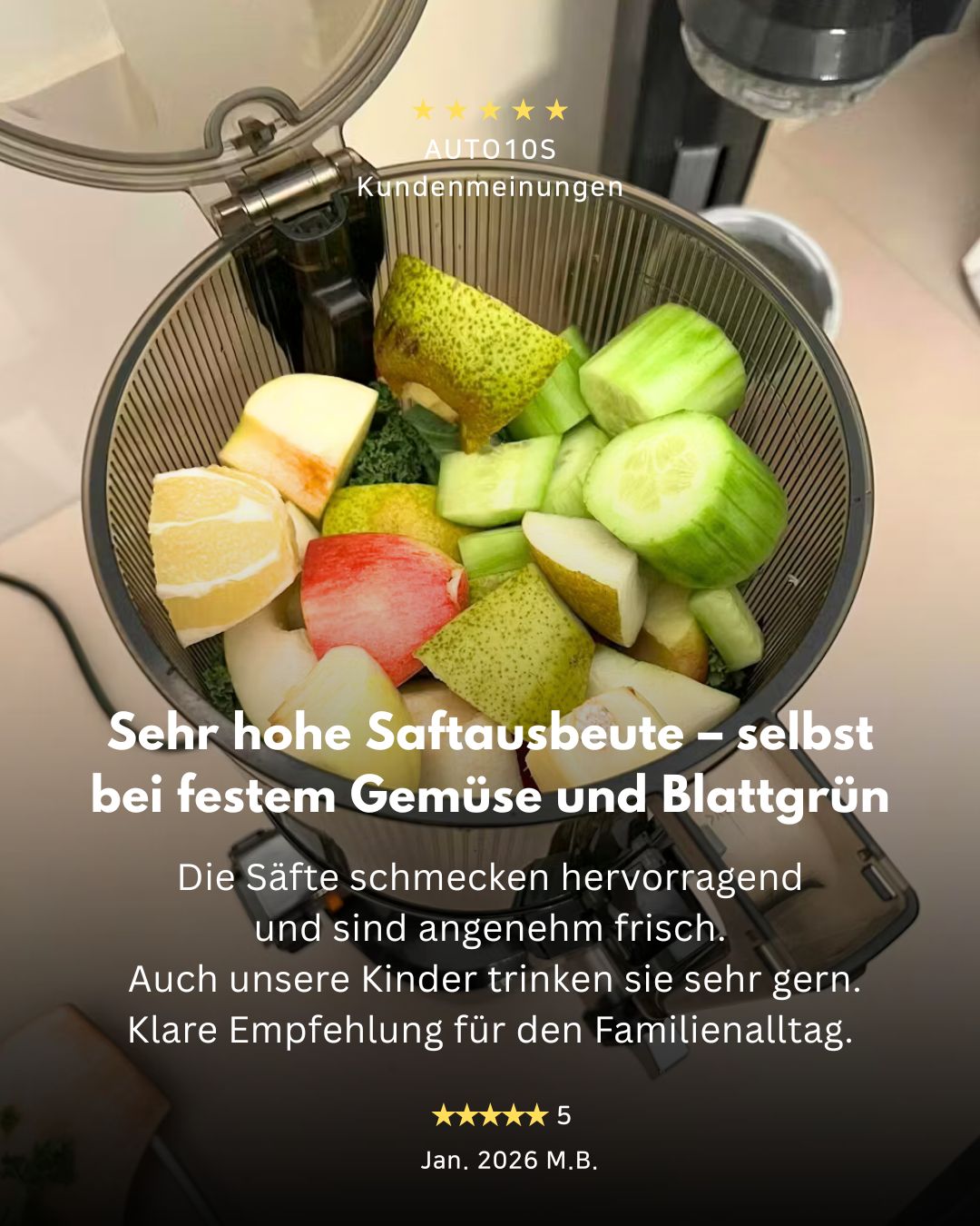 Ideal für Familien, Vielentsafter und alle, die frische Nährstoffe ohne Aufwand genießen möchten.